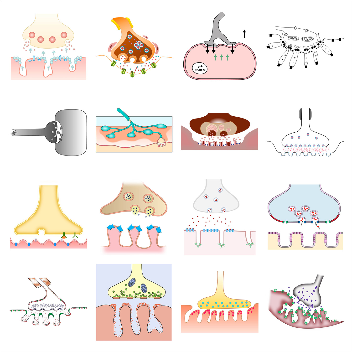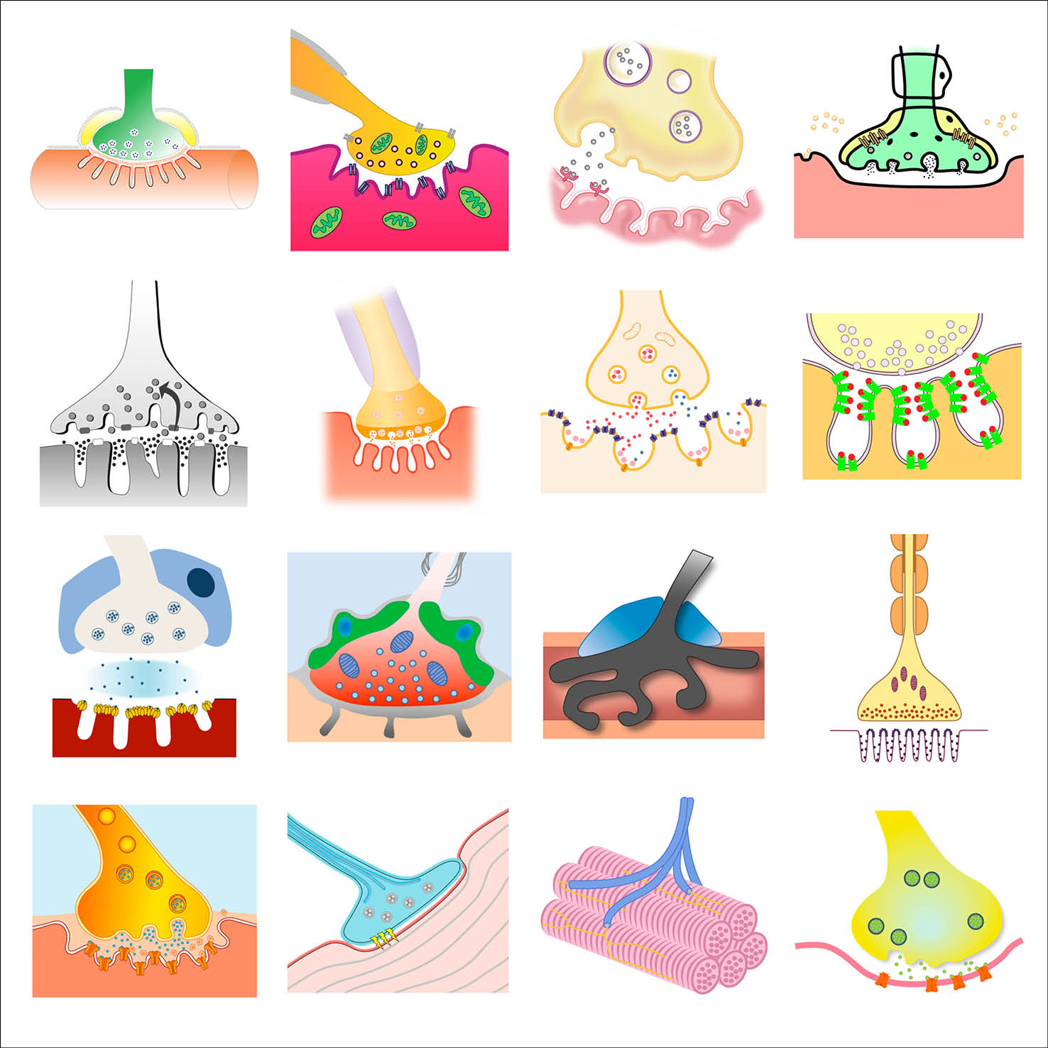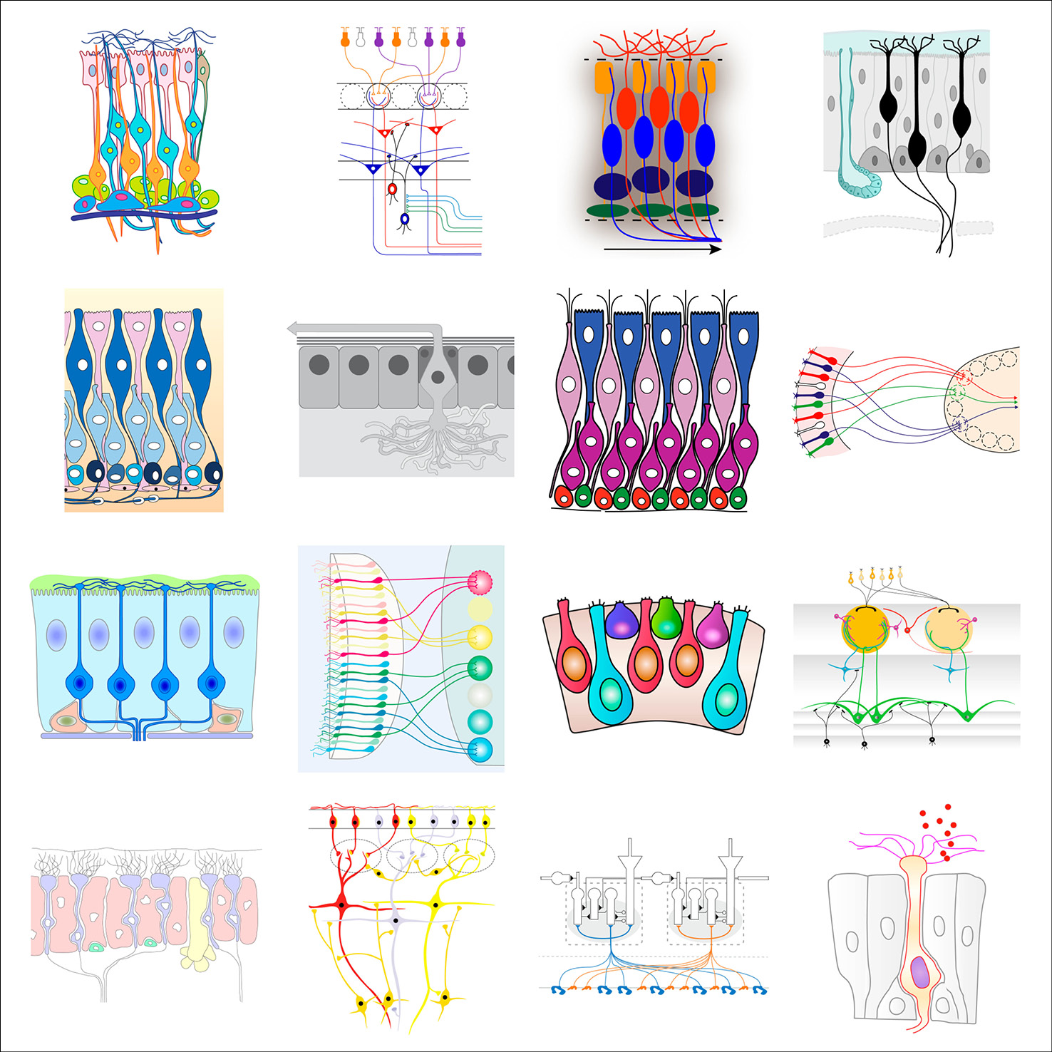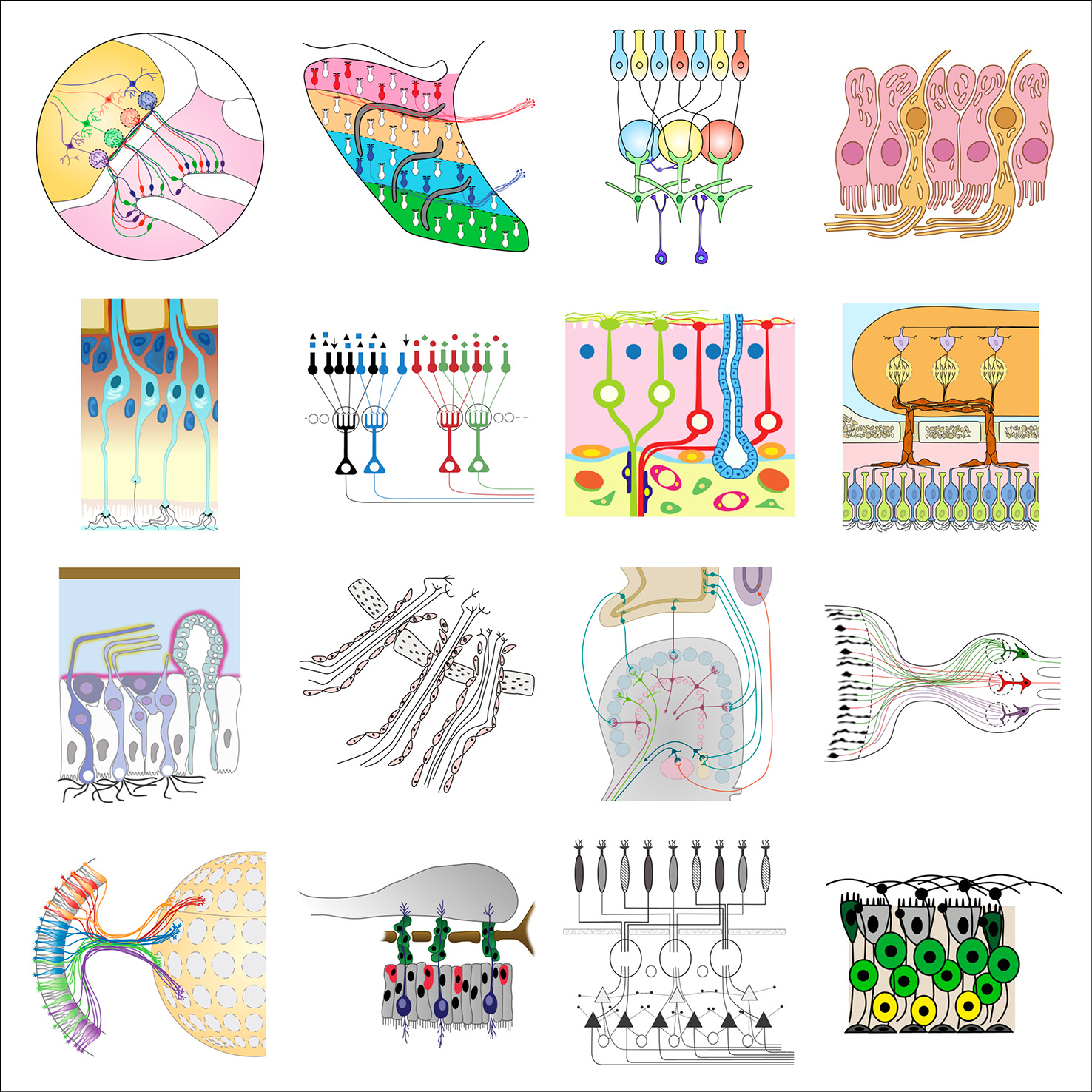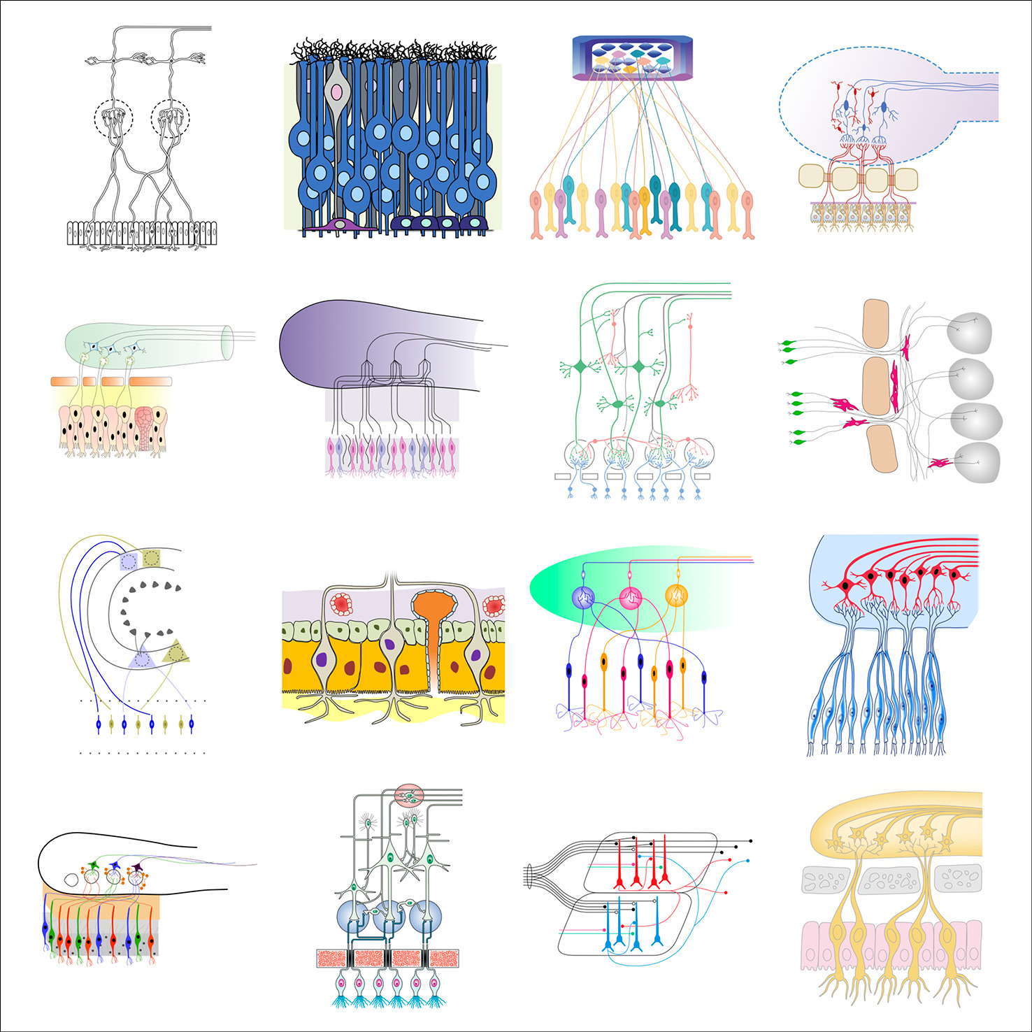 As part of her graphic design PhD research, and particularly when collaborating with the Centre for Neuroimaging Sciences at King’s College London, Gill created typologies of scientific visual elements, all re-drawn from existing conceptual figures. These elements were also collected in a dedicated Instagram feed and are shown below in their typologised groups.