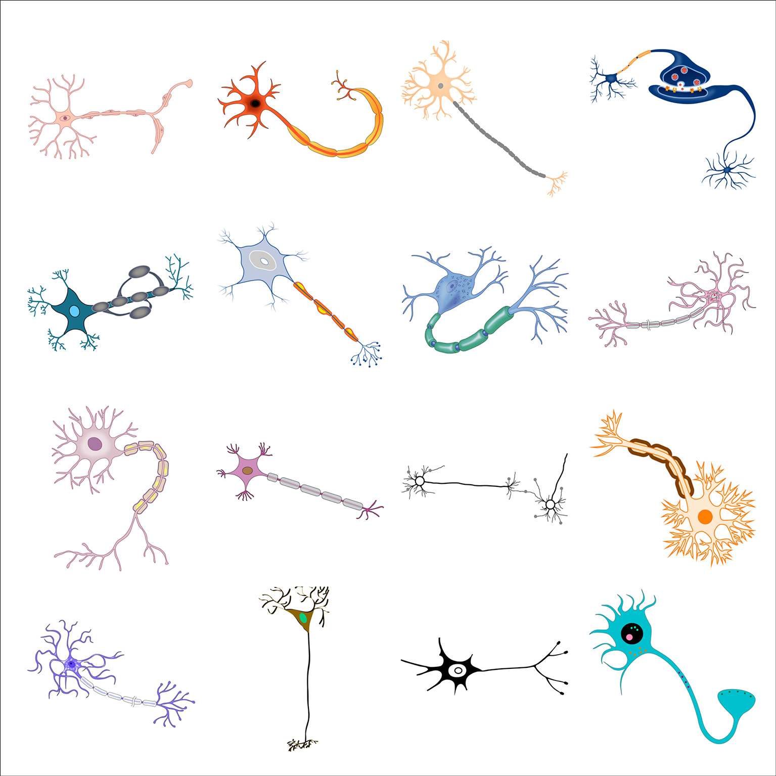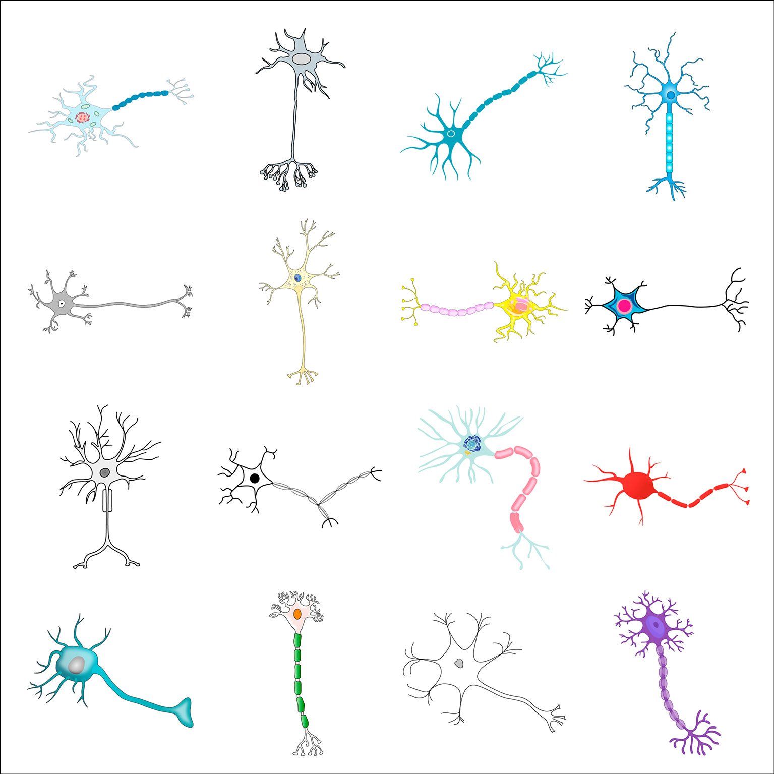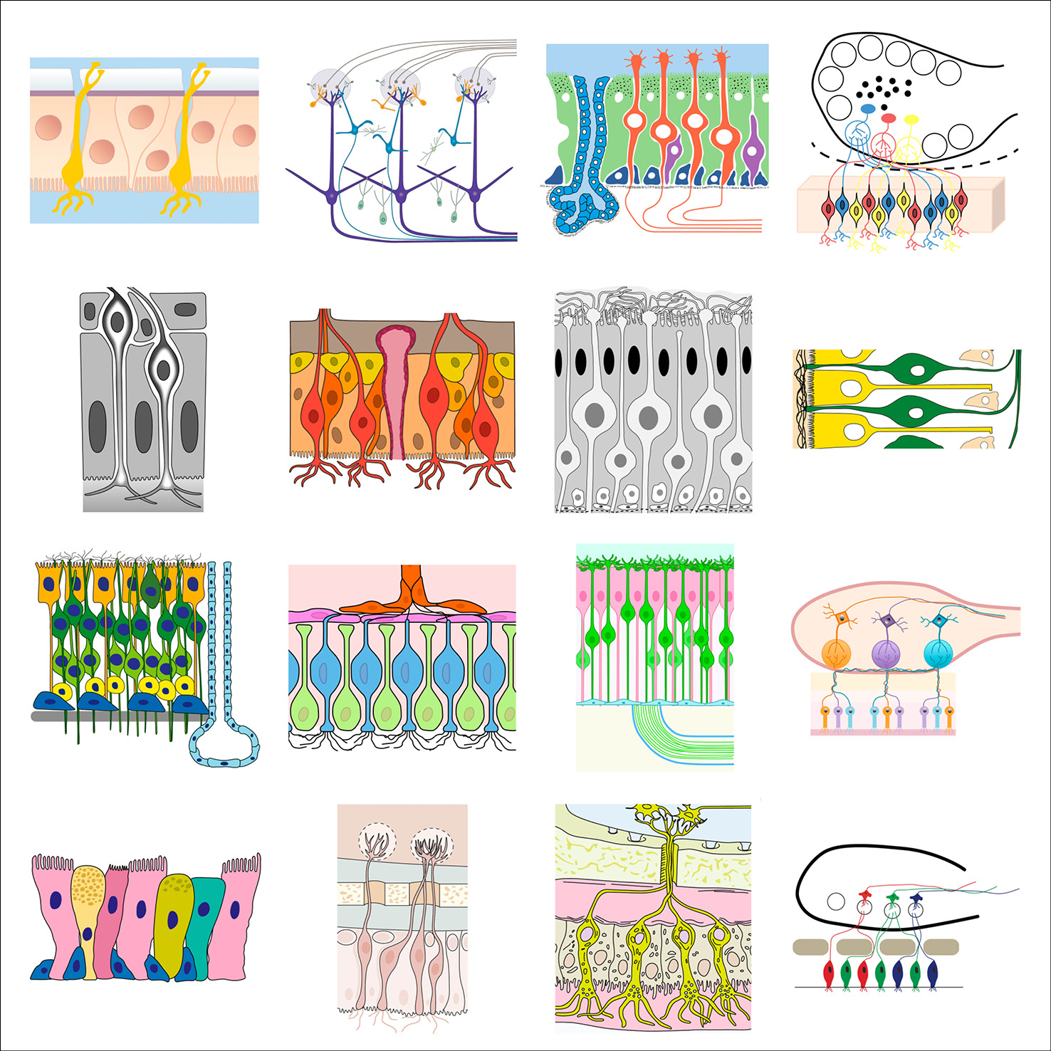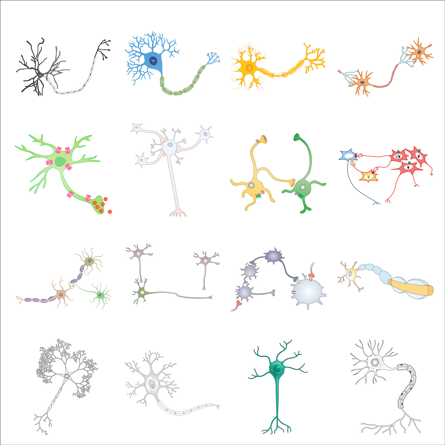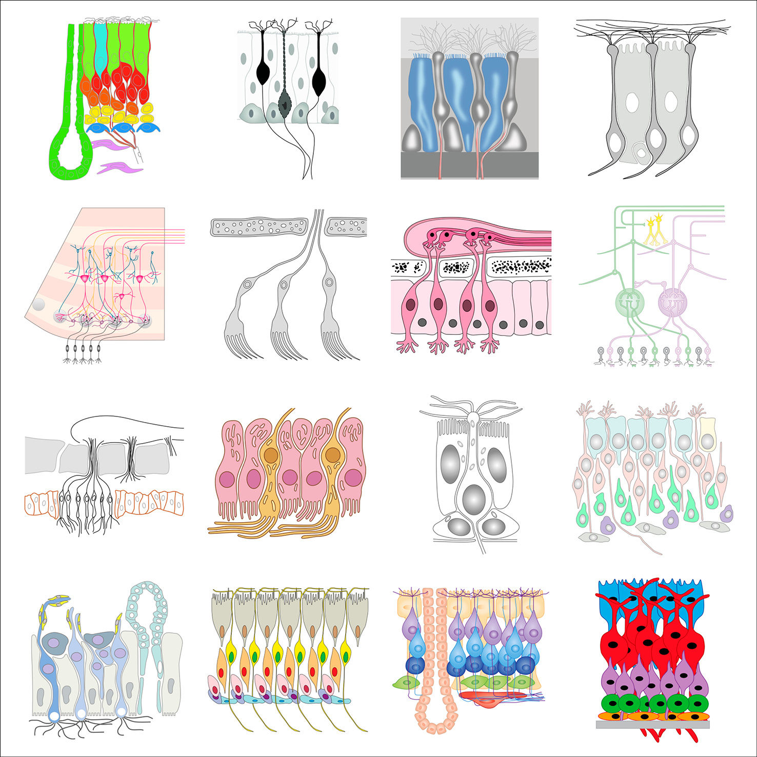 As part of her graphic design PhD research, and particularly when collaborating with the Centre for Neuroimaging Sciences at King’s College London, Gill created typologies of scientific visual elements, all re-drawn from existing conceptual figures. These elements were also collected in a dedicated Instagram feed and are shown below in their typologised groups.